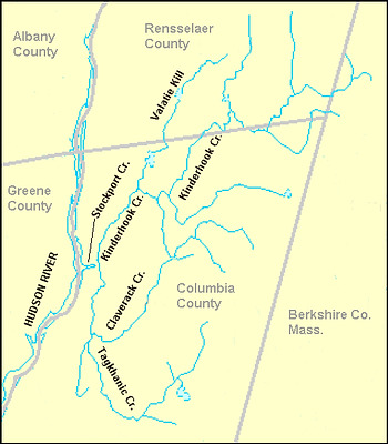 Kinderhook Creek is a 49.0-mile-long (78.9 km) tributary to Stockport Creek, an inlet of the Hudson River in the United States. From its source in Hancock, Massachusetts, the creek runs southwest through the Taconic Mountains into Rensselaer County, New York, and then into Columbia County. It flows through the towns of Stephentown, New Lebanon, Nassau, Chatham, Kinderhook and Stuyvesant to its mouth at Stockport Creek in the town of Stockport. Kinderhook Creek has a drainage area of over 329 square miles (850 km2).