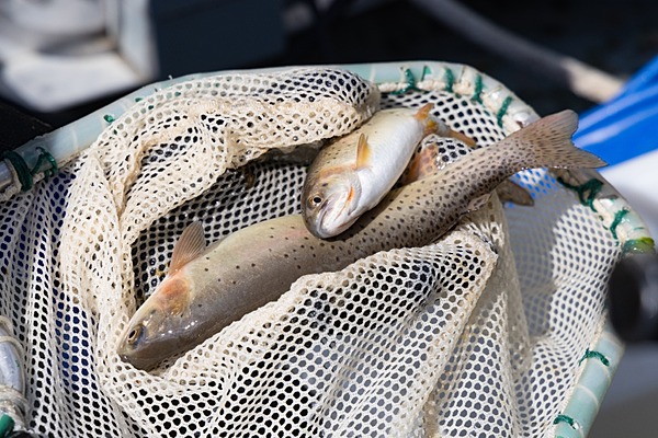 Yellowstone cutthroat trout arrive at holding area, Jacob W. Frank (NPS) photograph above.