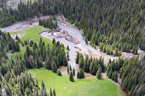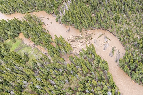 Debris in Soda Butte Creek on July 8, 2022, Jacob W. Frank (NPS) two photographs above.