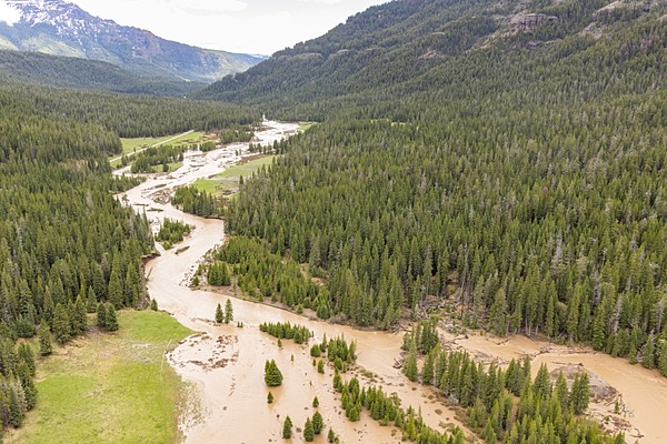 Swollen Soda Butte Creek at high water, Jacob W. Frank (NPS) June 13, 2022 two photographs above.
