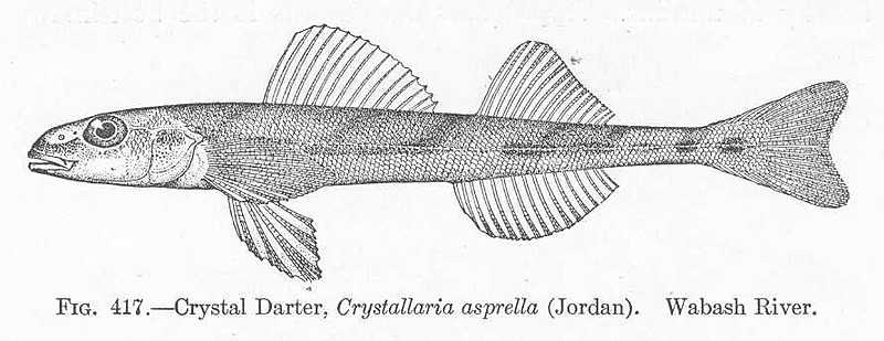 The crystal darter (Crystallaria asprella) is a species of freshwater ray-finned fish, a darter from the subfamily Etheostomatinae, part of the family Percidae, which also contains the perches, ruffes and pikeperches. This small North American fish is found in small, moderate, and swift rivers in the drainage basins of the Mississippi and Ohio Rivers. It is now extirpated from a majority of its range along the Ohio River.