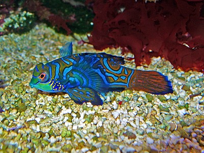 Dragonets are small, percomorph, marine fish of the diverse family Callionymidae (from the Greek kallis, "beautiful" and onyma, "name") found mainly in the tropical waters of the western Indo-Pacific. They are benthic organisms, spending most of their time near the sandy bottoms, at a depth of roughly two hundred meters. There exist 139 species of the fish, in nineteen genera. Due to similarities in morphology and behavior, dragonets are sometimes confused with members of the goby family. However, male dragonets can be differentiated from the goby by their very long dorsal fins, and females by their protruding lower jaws. The Draconettidae may be considered a sister family, whose members are very much alike, though rarely seen.