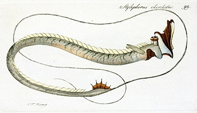 Lampriformes is an order of ray-finned fish. Members are collectively called lamprids (which is more properly used for the Lampridae) or lampriforms, and unite such open-ocean and partially deep-sea Teleostei as the crestfishes, oarfish, opahs, and ribbonfishes. A synonym for this order is Allotriognathi, while an often-seen, but apparently incorrect, spelling variant is Lampridiformes. They contain seven extant families which are generally small but highly distinct, and a mere 12 lampriform genera with some 20 species altogether are recognized.The scientific name literally means "shaped (like the) bright (one)", as "lampr-", meaning bright, comes from lampris, the generic name for the opah. In contrast, most other living lampriforms are actually ribbon-like and not very similar to the…