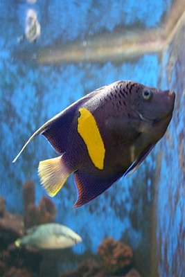 Marine angelfish are perciform fish of the family Pomacanthidae. They are found on shallow reefs in the tropical Atlantic, Indian, and mostly western Pacific Oceans. The family contains seven genera and about 86 species. They should not be confused with the freshwater angelfish, tropical cichlids of the Amazon Basin.