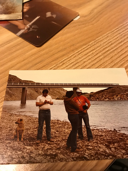 This may be a grainy photo from the early 80’s when we camped on the north side of the bridge. My dad and friends.