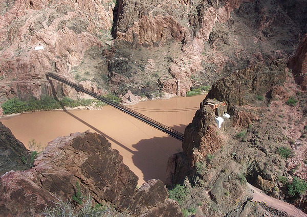 The Black Suspension Bridge also known as the Kaibab Suspension Bridge spans the Colorado River in the inner canyon of Grand Canyon National Park. It is part of the South Kaibab Trail and is the river crossing used by mules going to Phantom Ranch. The Black Bridge and Silver Bridge are the only spans in hundreds of river miles.