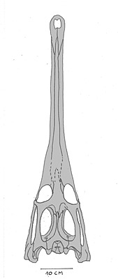 Dyrosauridae is a family of extinct neosuchian crocodyliforms that lived from the Late Cretaceous (Maastrichtian) to the Eocene. Dyrosaurid fossils are globally distributed, having been found in Africa, Asia, Europe, North America and South America. Over a dozen species are currently known, varying greatly in overall size and cranial shape. A majority were aquatic, some terrestrial and others fully marine (see locomotion below), with species inhabiting both freshwater and marine environments. Ocean-dwelling dyrosaurids were among the few marine reptiles to survive the Cretaceous–Paleogene extinction event. The dyrosaurids were a group of mostly marine, long jawed, crocodile-like quadrupeds up to 6 metres (20 ft) long. Based on bone tissue evidence, it has been hypothesized that they were…