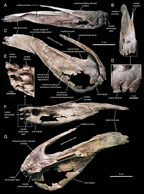 Hadrosaurids (Greek: ἁδρός, hadrós, "stout, thick"), or duck-billed dinosaurs, are members of the ornithischian family Hadrosauridae. This group is known as the duck-billed dinosaurs for the flat duck-bill appearance of the bones in their snouts. The family, which includes ornithopods such as Edmontosaurus and Parasaurolophus, was a common group of herbivores during the Late Cretaceous Period. Hadrosaurids are descendants of the Upper Jurassic/Lower Cretaceous iguanodontian dinosaurs and had a similar body layout. Hadrosaurs were among the most dominant herbivores during the Late Cretaceous in Asia and North America, and during the close of the Cretaceous several lineages dispersed into Europe, Africa, South America and Antarctica. Like other ornithischians, hadrosaurids had a predentary…