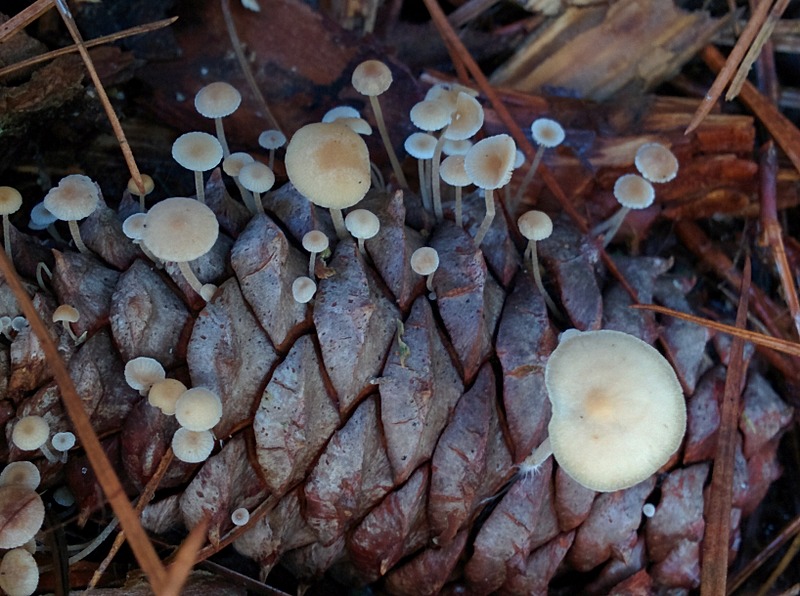 Baeospora myosura is a species of fungus that produces mushrooms with long, coarse hairs. It grows on plant material and manure. It is white to cream and the spore color is white, cream, or yellowish. It is commonly found in North America and Europe. The common name of the mushroom is conifercone cap. It was described in 1938 by mycologist Rolf Singer. It is regarded as nonpoisonous.