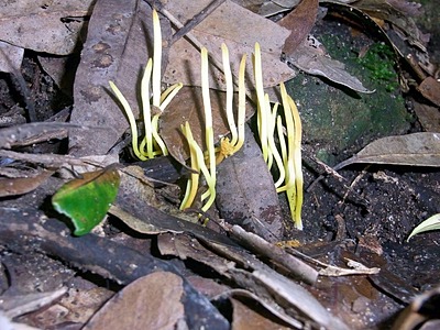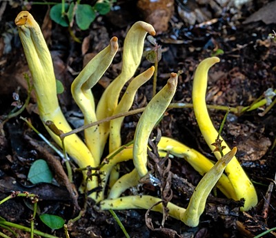 The Clavariaceae are a family of fungi in the order Agaricales. Collectively, they are commonly known as coral fungi due to their resemblance to aquatic coral, although other vernacular names including antler fungi, finger fungi, worm mold, and spaghetti mushroom are sometimes used for similar reasons.