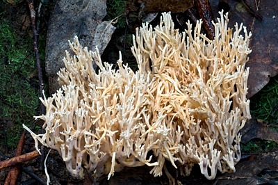 Clavulina is a genus of fungi in the family Clavulinaceae, in the Cantharelloid clade (order Cantharellales).. Species are characterized by having extensively branched fruit bodies, white spore print, and bisterigmate basidia (often with secondary septation). Branches cylindrical or flattened, blunt, pointed or crested at apex. Hyphae with or without clamps. Basidia cylindrical to narrowly clavate, mostly with two sterigmata which are large and strongly incurved. Spores subspherical or broadly ellipsoid, smooth, thin-walled, each with one large oil drop or guttule. The genus contains approximately 45 species with a worldwide distribution, primarily in tropical regions. Species of Clavulina are mostly ectomycorrhizal. A recent study has identified Clavulina to the genera level as present…