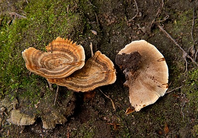 Coltricia is a genus of fungi in the family Hymenochaetaceae. It was circumscribed by Samuel Frederick Gray in 1821. Common name is "Tiger's Eye Fungus".