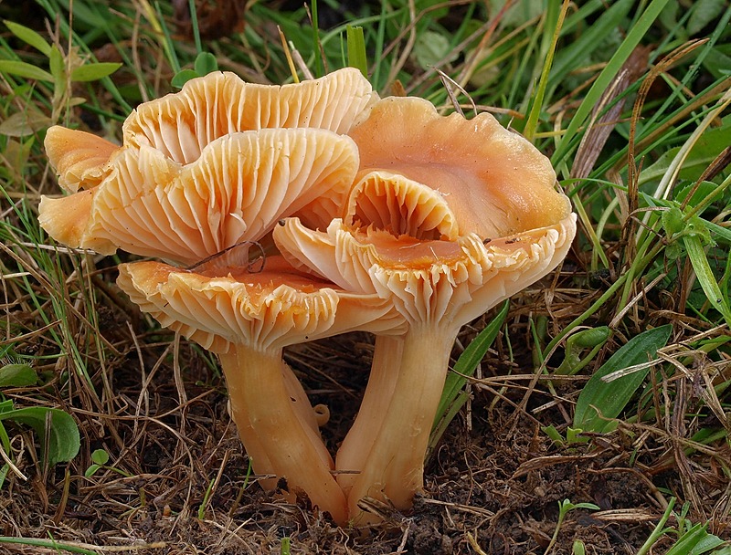 Cuphophyllus pratensis is a species of agaric (gilled mushroom) in the family Hygrophoraceae. It has been given the recommended English name of meadow waxcap in the UK and in North America has variously been called the meadow waxy cap, salmon waxy cap, and butter meadowcap. The species has a widespread, mainly temperate distribution, occurring in grassland in Europe and in woodland elsewhere. The basidiocarps (fruit bodies) are edible and are occasionally collected and sold commercially.