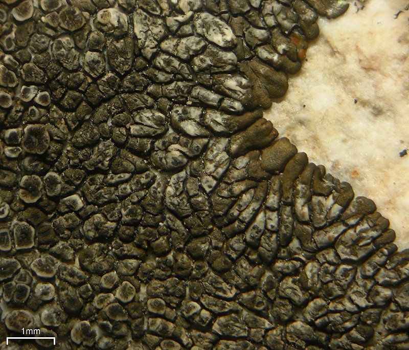 Dimelaena thysanota (Mountain Lichen) is a crustose lichen in the family Physciaceae, found in the mountains of western North America and the Sonoran Desert.