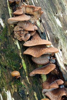 Lentinellus is a genus of white rot, wood decay, lamellate agaric in the family Auriscalpiaceae, further characterized in part by rough-walled, amyloid spores produced on lamellae with jagged edges. Typically, thick-walled hyphae in the fruit body are in part amyloid, and frequently the taste of the mushrooms is acrid (burning, spicy). The widespread genus has been estimated to contain 15 species. Mycologists Ronald Petersen and Karen Hughes considered 24 species in their 2004 world monograph of the genus.