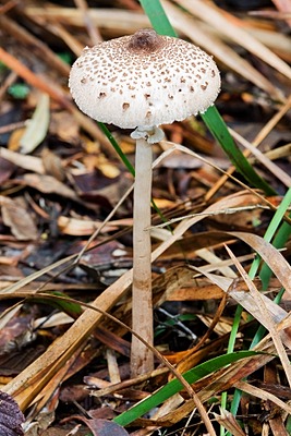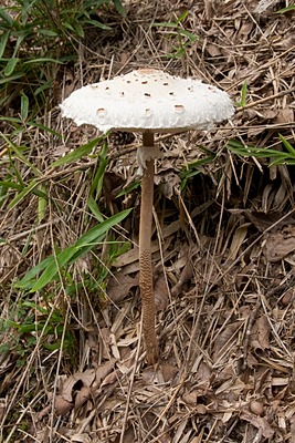 Macrolepiota is a genus of white spored, gilled mushrooms of the family Agaricaceae. The best-known member is the parasol mushroom (M. procera). The widespread genus contains about 40 species.