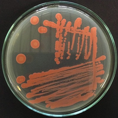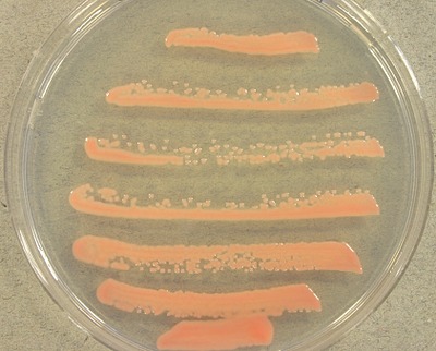 Rhodotorula is a genus of unicellular pigmented yeasts, part of the division Basidiomycota. It is readily identifiable by distinctive orange/red colonies when grown on SDA (Sabouraud's Dextrose Agar). This distinctive color is the result of pigments that the yeast creates to block out certain wavelengths of light (620–750 nm) that would otherwise be damaging to the cell.