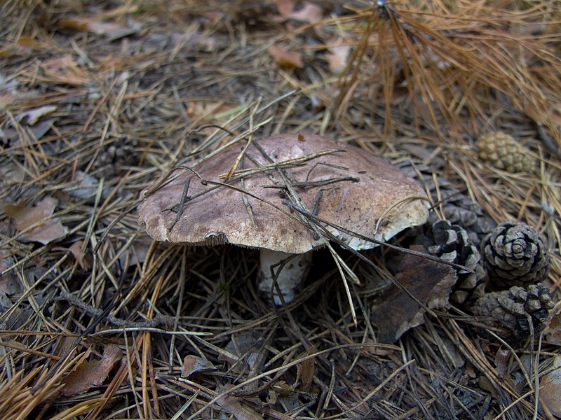 Sarcodon leucopus is a species of tooth fungus in the family Bankeraceae. Found in Asia and Europe, it was described as new to science in 1825 by Christian Hendrik Persoon. Mycologists Rudolph Arnold Maas Geesteranus and John Axel Nannfeldt transferred it to the genus Sarcodon in 1969. Fruit bodies of the fungus have flattened to slightly depressed caps up to 20 cm (8 in) in diameter. The surface texture, initially finely felt-like, later cracks to form shiny scales. Its color is pale purplish-brown to dark brown. The stipe measures 4–8 cm (1.6–3.1 in) long by 2–6 cm (0.8–2.4 in) thick. Spines on the cap underside are up to 15 mm long and about 1 mm thick. The flesh has a disagreeable odor, and a bitter taste. Spores are roughly spherical, typically measuring 7.2–7.9 by 4.5–5.6 µm. The…