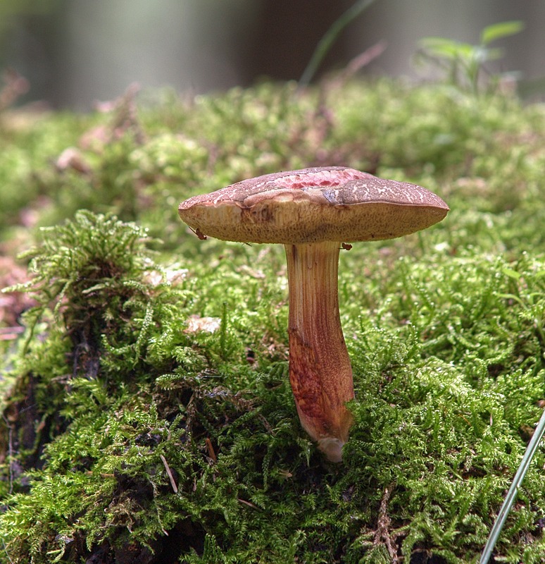 Xerocomellus chrysenteron, formerly known as Boletus chrysenteron or Xerocomus chrysenteron, is a small, edible, wild mushroom in the family Boletaceae. These mushrooms have tubes and pores instead of gills beneath their caps. It is commonly known as the red cracking bolete.