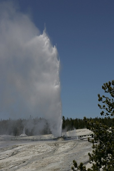 Beehive Geyser is a geyser in the Upper Geyser Basin of Yellowstone National Park in the United States. The 4-foot (1.2 m) tall cone resembles a beehive. Beehive's Indicator is a small, jagged cone-type geyser located about 10 feet (3.0 m) from Beehive.