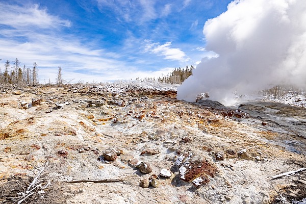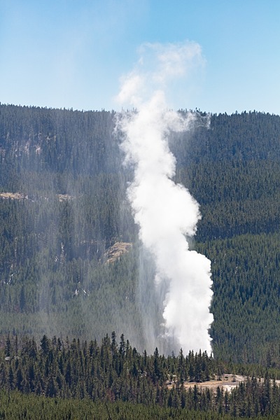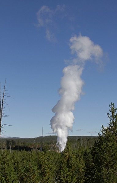 Steamboat Geyser steam phase viewed from the Norris Geyser Basin Overlook. Above two photographs taken on August 27, 2019 by Jacob W. Frank (NPS).