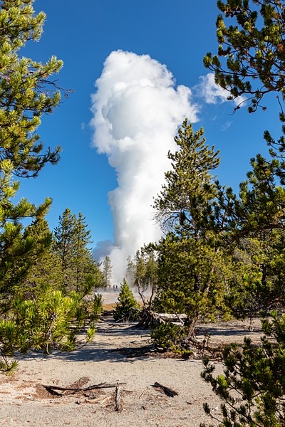 Steamboat Geyser eruption seen through the trees. Above two photographs taken on September 17, 2018 by Jacob W. Frank (NPS).