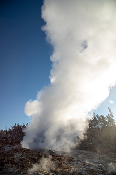 Steamboat Geyser erupts into the air on a clear morning. Above photograph taken on September 17, 2018 by Jacob W. Frank (NPS).