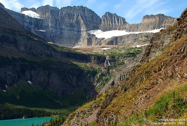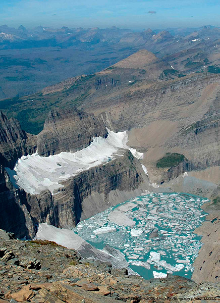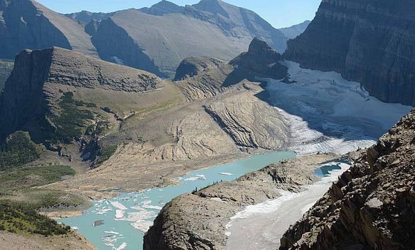 Grinnell Glacier is in the heart of Glacier National Park in the U.S. state of Montana. The glacier is named for George Bird Grinnell, an early American conservationist and explorer, who was also a strong advocate of ensuring the creation of Glacier National Park. The glacier is in the Lewis Range and rests on the north flank of Mount Gould at an altitude averaging 7,000 feet (2,100 m), in the Many Glacier region of the park. The glacier has been one of the most photographed glaciers in the park and many of these photographs date back to the mid 19th century. When compared with images taken over subsequent years, the glacier has obviously retreated substantially. In 1850, at the end of what has been referred to as the Little Ice Age, Grinnell Glacier measured 710 acres (2.9 km2), including…