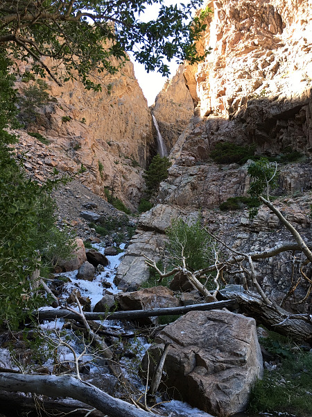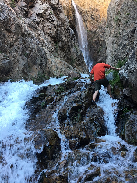 The walking after this point is quite a bit more difficult, but if you are confident crossing the creek, scrambling up rocks, and across scree, you can reach the base of the falls and feel its mist.