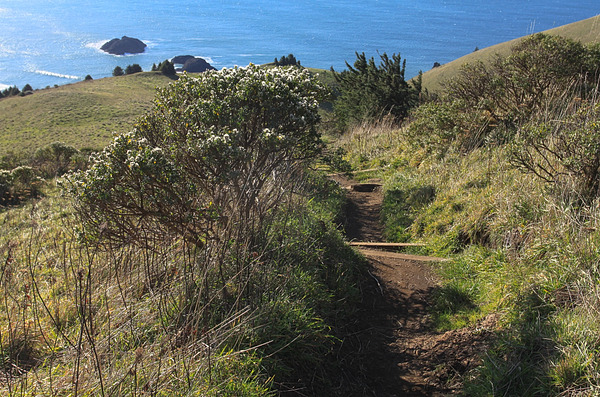 As soon as the trees end, the panoramic views of the ocean begin. This steep grassy hillside is protected by the Nature Conservancy because its a unique ecosystem home to several very rare species of flora and fauna: