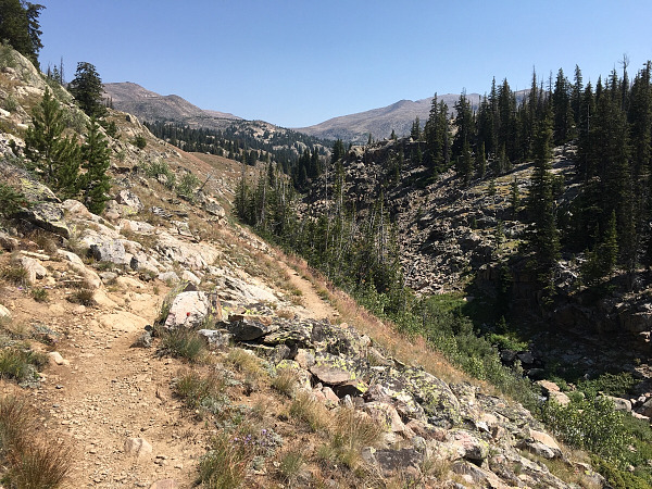 gently climbs uphill for most of its length, gaining roughly 1400 feet in 6 miles. The trail is easy to follow, but make sure to follow the signs marking trail #65 at the junctions near the trailhead.