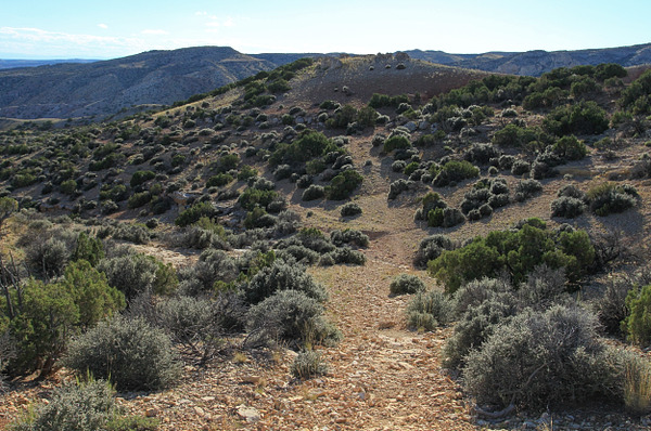 and towards the canyon. After cresting the hill, there is a junction with a connector trail that leads to the