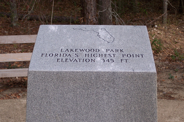 Britton Hill is the highest natural point in the state of Florida, USA, with a summit elevation of 345 feet (105 m) above mean sea level. Britton Hill is the lowest state highpoint in the United States, 103 feet (31 m) lower than the next lowest highpoint, Ebright Azimuth in Delaware. The hill is located in northern Walton County near the town of Lakewood, Florida, just off County Road 285 about 2 miles (3.2 km) southeast of Florala, Alabama. A small park called Lakewood Park marks the high point and features a monument, trails and an information board.