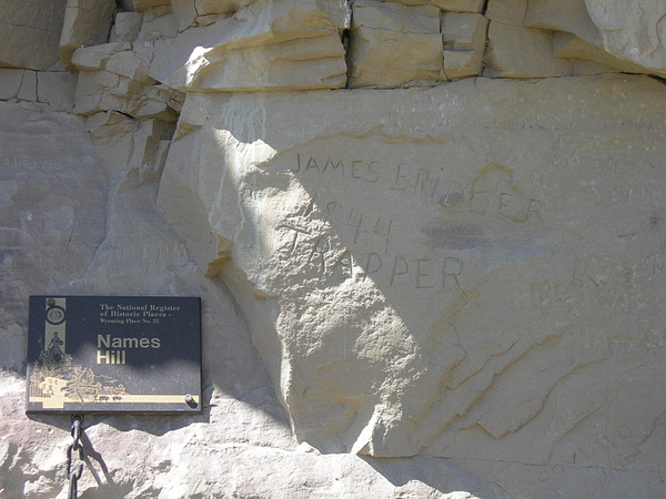 Names Hill is a bluff located on the bank of the Green River in the U.S. state of Wyoming, where travelers on the Oregon and California trails carved their names into the rock. It is one of three notable "recording areas" along the emigrant trails in Wyoming along with Register Cliff and Independence Rock.