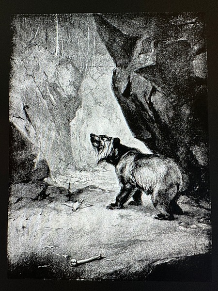 A rush of his ancient courage surged in the Grizzly’s rugged breast. He turned aside into the little [Death] gulch. The deadly vapors entered in, filled his huge chest and tingled in his vast, heroic limbs as he calmly lay down on the rocky, herbless floor and as gently went to sleep, as he did that day in his Mother’s arms by the Graybull, long ago.