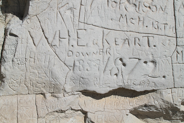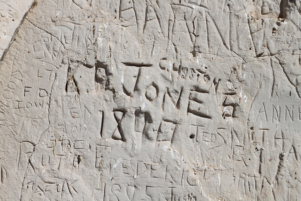 . The cliff is a state historic site and unfortunately has been subjected to substantial vandalism. Finding the older names can take some careful searching.