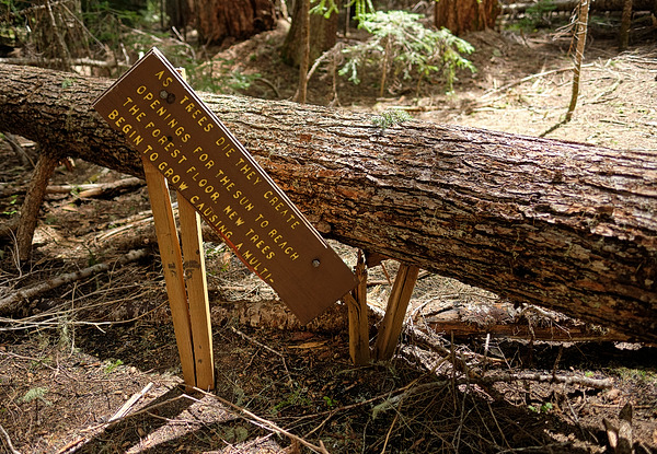 The Basket Tree Interpretive Trail features general information about tree species and their role in the forest along with, most-notably, a cedar tree that Native Americans peeled bark from for making baskets.