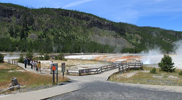 The Black Sand Basin Trail is one of the shortest thermal area boardwalks of