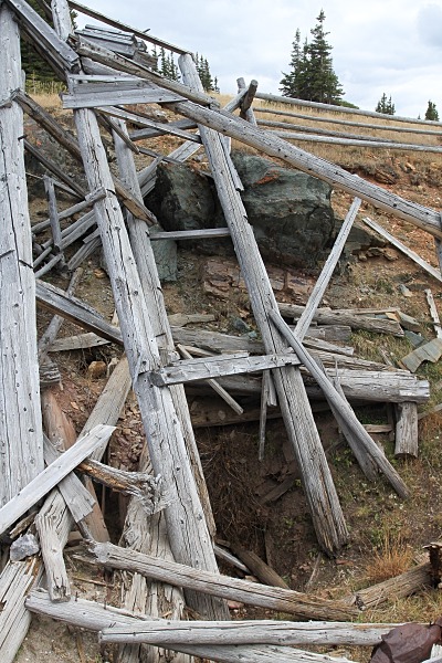 Constructed in the 1920’s, the Red Mask Mine consisted of a vertical mine shaft, ore dump, hoisting tower, shaft house and boiler. Claimed under the provision of the General Mining Law of 1872, the mine was thought to contain rich veins of gold, silver and copper. Only small amounts of silver and trace amounts of gold and copper were ever extracted. The remains that you presently see consist of the collapsed hoisting tower, rusted boiler and shafthouse remnants.