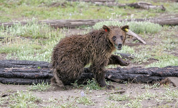 Grizzly bear yearling moved June 2005 from Stevenson Island to the South Arm of Yellowstone Lake.