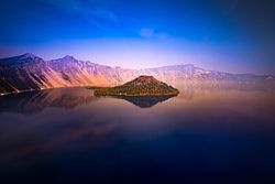 Crater Lake (Klamath: giiwas) is a caldera lake in south-central Oregon in the western United States. It is the main feature of Crater Lake National Park and is famous for its deep blue color and water clarity. The lake partly fills a nearly 2,148-foot (655 m)-deep caldera that was formed around 7,700 (± 150) years ago by the collapse of the volcano Mount Mazama. There are no rivers flowing into or out of the lake; the evaporation is compensated for by rain and snowfall at a rate such that the total amount of water is replaced every 250 years. With a depth of 1,949 feet (594 m), the lake is the deepest in the United States. In the world, it ranks ninth for maximum depth, and third for mean (average) depth. Crater Lake is also known for the "Old Man of the Lake", a full-sized tree which is…