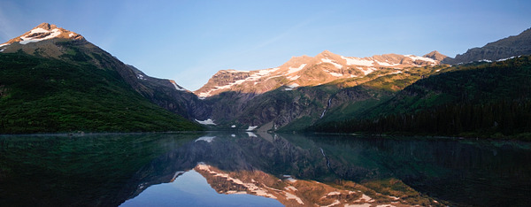 Gunsight Lake is located in Glacier National Park, in the U. S. state of Montana. The lake is surrounded by high peaks including Fusillade Mountain to the north and Gunsight Mountain to the west. Mount Jackson rises more than 4,700 feet (1,400 m) above Gunsight Lake to the south.