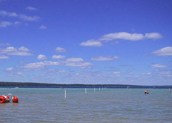 Higgins Lake is a large recreational and fishing lake in Roscommon County, in the U.S. state of Michigan. The 9,900 acre (40 km²) lake is known for its deep, clear waters and is the 10th largest in Michigan with a shoreline of 21 miles (34 km). It is named after Sylvester Higgins, the first chief of the topographical department of the Michigan Geological Survey. It has a maximum width of 4 miles (6.4 km) and a length of 7 miles (11 km) with a maximum depth of 135 feet (41 m). The mean depth is 44 feet (13 m) and the lake contains almost 20 billion cubic feet (570 million m³) of water. Its retention time is about 12.5 years. The lake's watershed covers 19,000 acres (77 km²). The twin-lobed lake receives half of its water from submerged springs, six percent from incoming streams, and the…