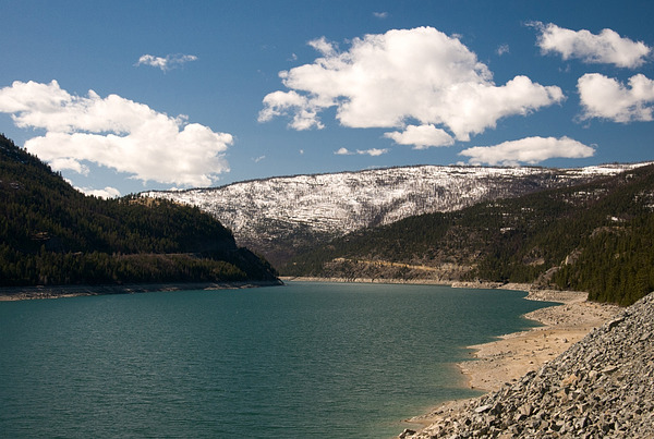 Lake Koocanusa is a reservoir in British Columbia (Canada) and Montana (United States) formed by the damming of the Kootenay River by the Libby Dam in 1972. The Dam was formally dedicated by President Gerald Ford on August 24, 1975. The lake is formed north of the dam, reaching 48 miles (77 km) to the Canada–United States border and 42 miles (68 km) further into British Columbia. The lake holds 13% of the water in the Columbia River system. The town of Rexford was moved, as well as the Great Northern Railroad line. The town of Waldo, BC is now covered by the lake. What was once a barrier to river travel, Jennings Canyon is now inundated by the lake. Lake Koocanusa was named in a contest won by Alice Beers of Rexford, Montana. The name is made from the first three letters of the Kootenay…