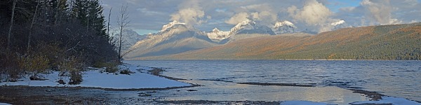Lake McDonald is the largest lake in Glacier National Park. It is located at 48°35′N 113°55′W in Flathead County in the U.S. state of Montana. Lake McDonald is approximately 10 miles (16 km) long, and over a mile (1.6 km) wide and 472 feet (130 m) deep, filling a valley formed by a combination of erosion and glacial activity. Lake McDonald lies at an elevation of 3,153 feet (960 m) and is on the west side of the Continental Divide. The Going-to-the-Sun Road parallels the lake along its southern shoreline. The surface area of the lake is 6,823 acres (27.6 km2). The lake is home to numerous native species of trout, and other game fish. Catchable species include, but are not limited to - westslope cutthroat trout, rainbow trout, bull trout (char), lake trout (char), Lake Superior whitefish,…