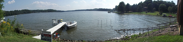Lake Redstone is in La Valle in northern Sauk County of Wisconsin, United States. Lake Redstone is a reservoir. Construction of the lake was started in 1964. The lake's surface area is approximately 650 acres (2.6 km2), with over 17 miles (27 km) of shoreline and 4½ miles long. Lake Redstone has no mandatory owners association, but owners are encouraged to join the Lake Redstone Property Owners Association. Lake Redstone has a 19,200-acre (78 km2) watershed to the north from Juneau County that fills the lake. The dam is located at the south end and has a top draw spillway. All excess water creates a cascading waterfall and eventually flows into the Baraboo River. It is located in Sauk County, approximately seven miles from Reedsburg, and only three miles from LaValle.