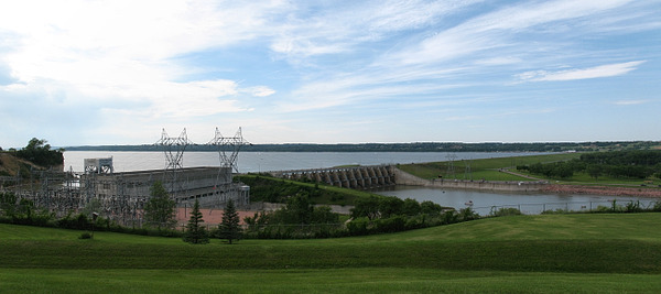 Lewis and Clark Lake is an impoundment on the Missouri River above Gavins Point Dam, near Yankton, South Dakota. It is located on the border of South Dakota and Nebraska. The reservoir is approximately 25 miles (40 km) long, with a surface area of 31,000 acres (130 km²); it has a maximum depth of 45 feet (14 m). It is the smallest of the Pick-Sloan Plan impoundments, and has been plagued with siltation problems. Lewis and Clark Lake (with Gavins Point Dam) is a very popular for camping as a regional tourist destination, having hosted over one million visitors per year.