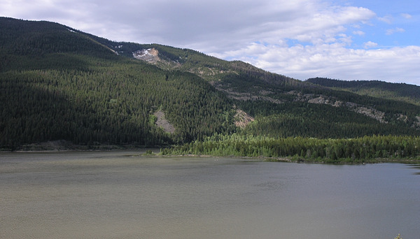 Lower Slide Lake is located in Bridger-Teton National Forest, in the U.S. state of Wyoming. The natural lake was created on June 23, 1925 when the Gros Ventre landslide dammed the Gros Ventre River. The lake was once much larger, however part of the rock dam failed less than two years later, on May 18, 1927, causing deadly flooding downstream. The lake waters have natural and stocked fish including lake and Snake River fine-spotted cutthroat trout, and mountain whitefish.