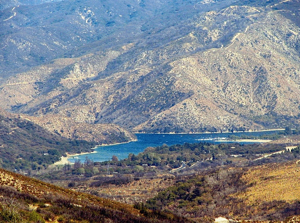 Silverwood Lake is a large reservoir in San Bernardino County, California, United States, located on the West Fork Mojave River, a tributary of the Mojave River in the San Bernardino Mountains. It was created in 1971 as part of the State Water Project by the construction of the Cedar Springs Dam as a forebay on the 444-mile (715 km) long California Aqueduct (consequently inundating the former town of Cedar Springs), and has a capacity of 73,000 acre feet (90,000,000 m3).