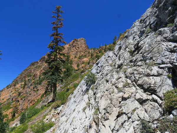 For the geology fan, the Red Buttes Wilderness and the Towhead Lake area are exceptional. Towhead Lake lies in an exposure of peridotite, a family of rocks which includes "seafloor basalt" produced where tectonic plates move apart, but also crystalline residues of basalt melts such as dunite and harzburgite. These are the "left-overs" which often underlie zones of seafloor spreading. Higher in the valley, a marble outcrop trends east-west, and higher in the valley still, schist and metamorphosed shale outcrop along the access trail.